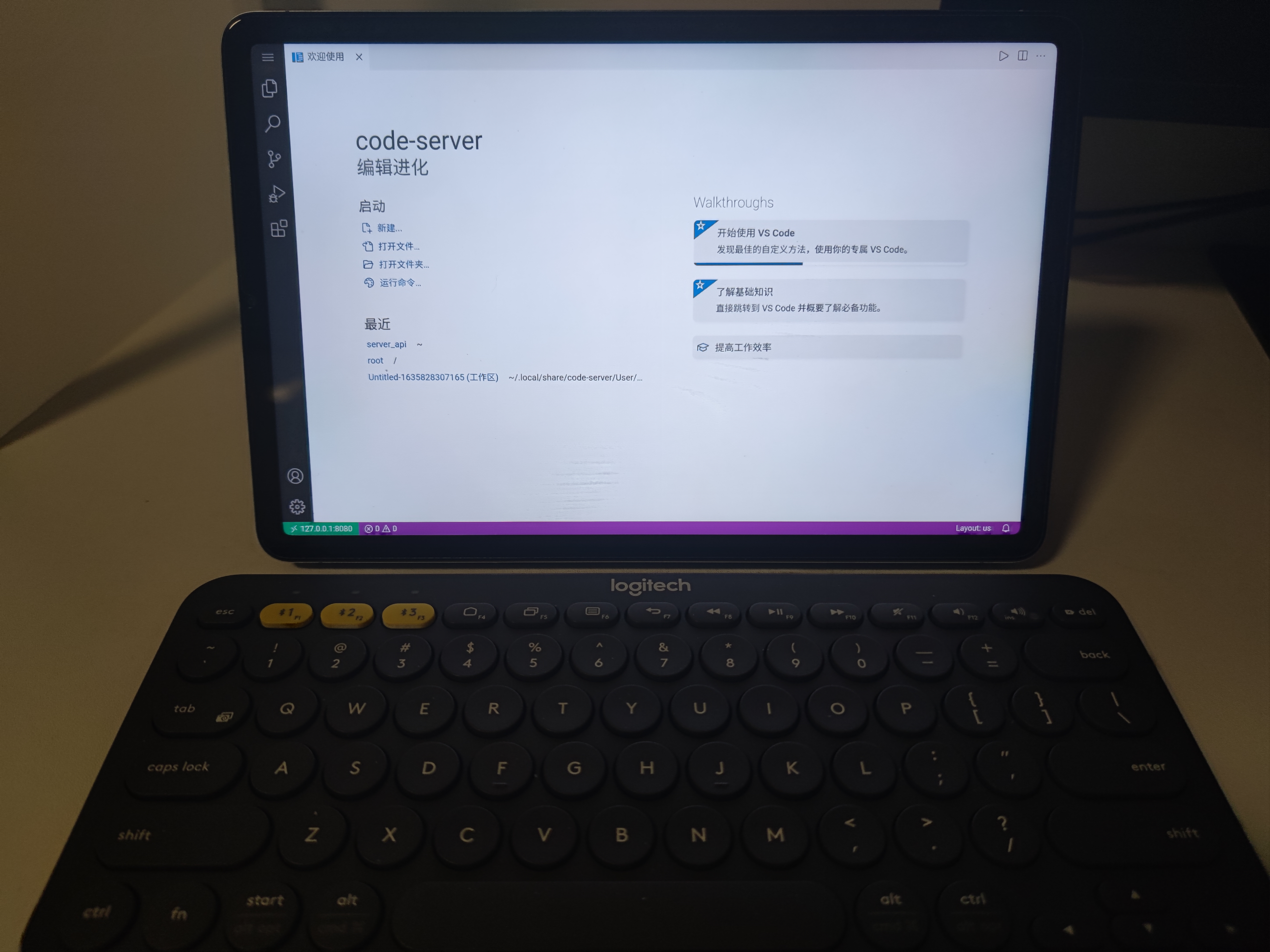 code-server 在 github 发布的版本中是有 arm64 架构的,整个下载后,开终端解压执行就挂了,这个虽然是 arm64,并且带有一个 arm64 的 node,但是是为完整 linux 准备的。也就是说,node 中硬编码了 /usr /lib 等这些路径,并且附带的 node_modules 中也有大量的使用到 linux 特有节点的路径,这些安卓上都没有。