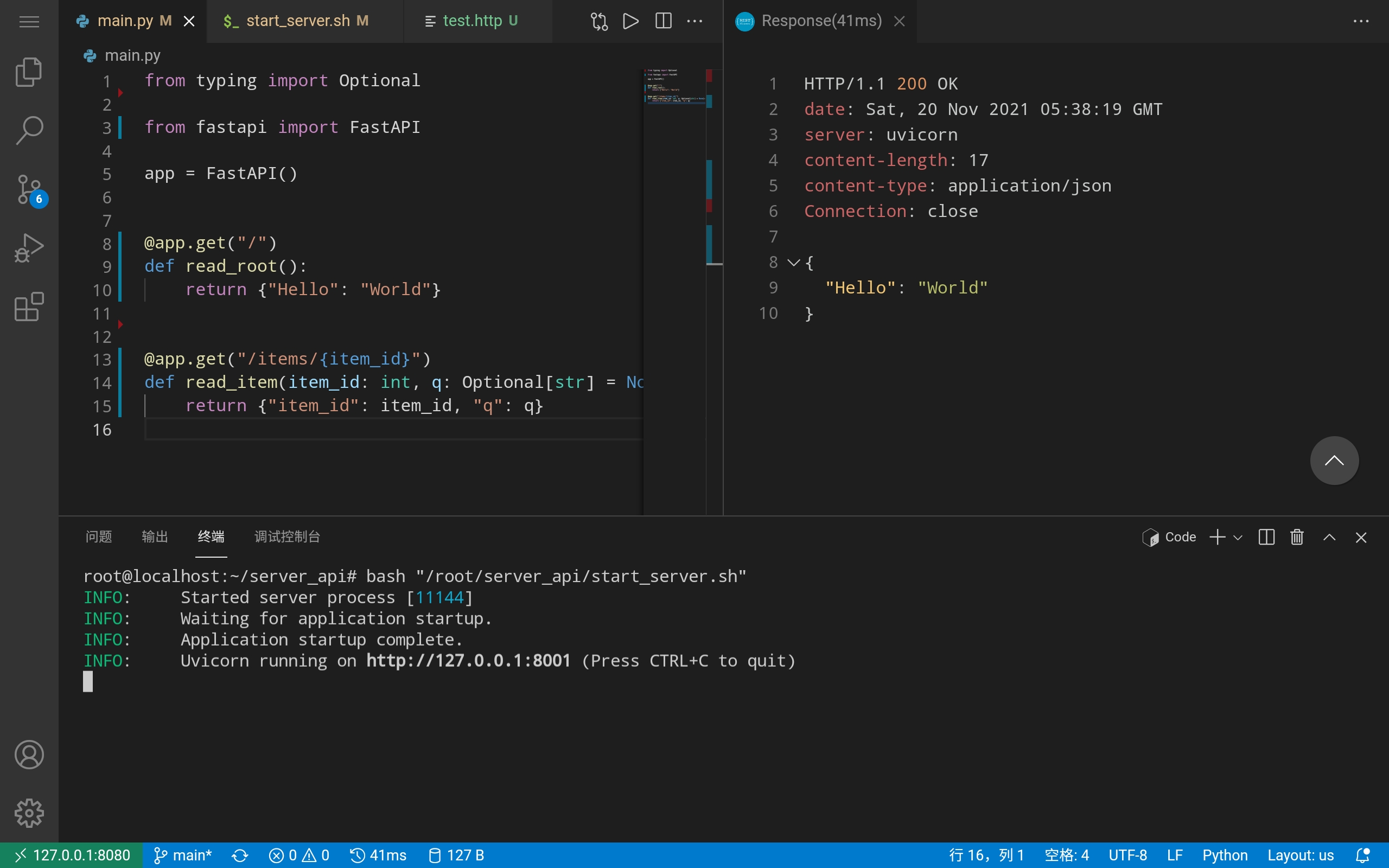 写一点简单的后台,如 python 的 fastapi,flask,并通过 rest client 进行接口测试