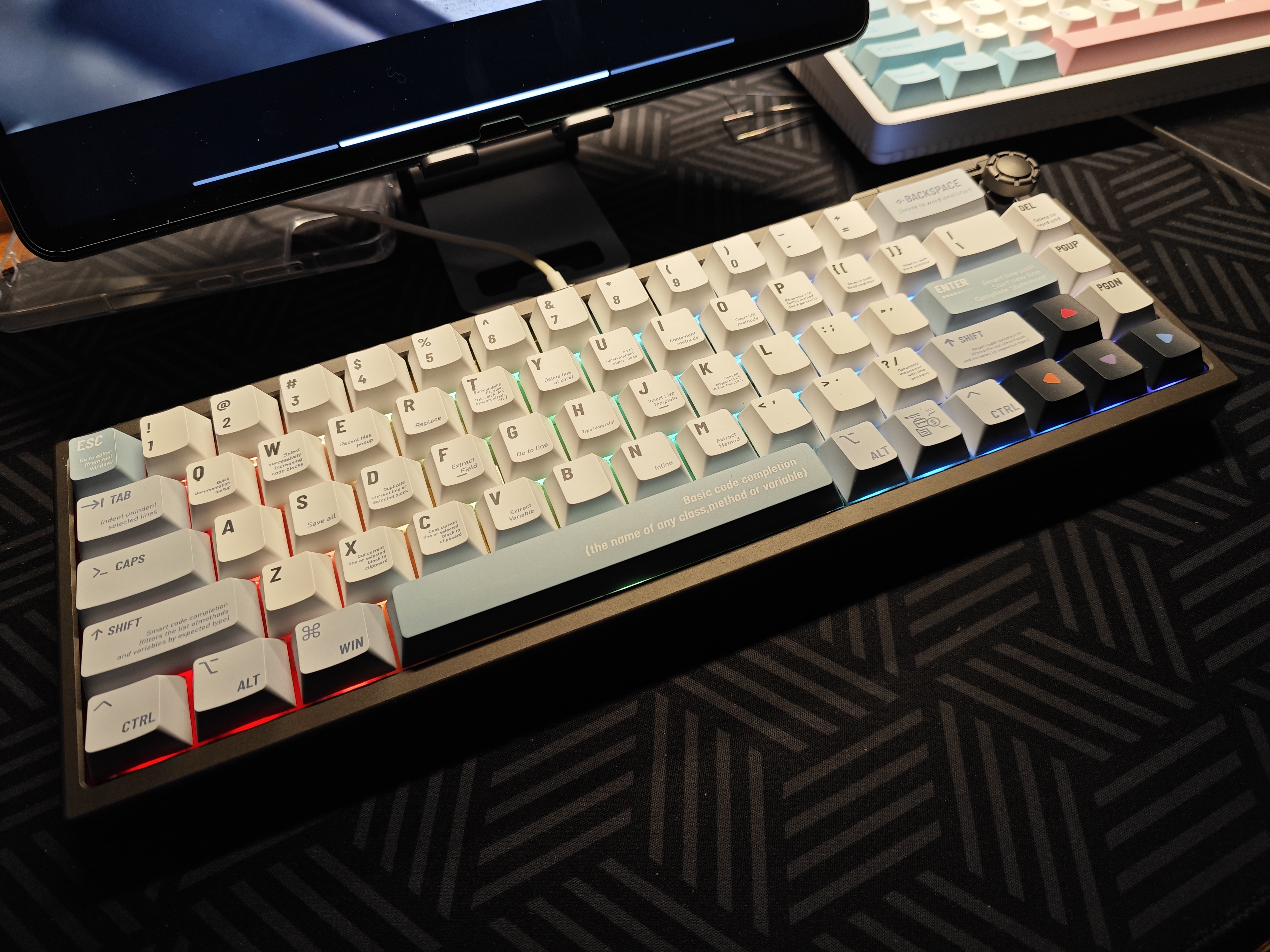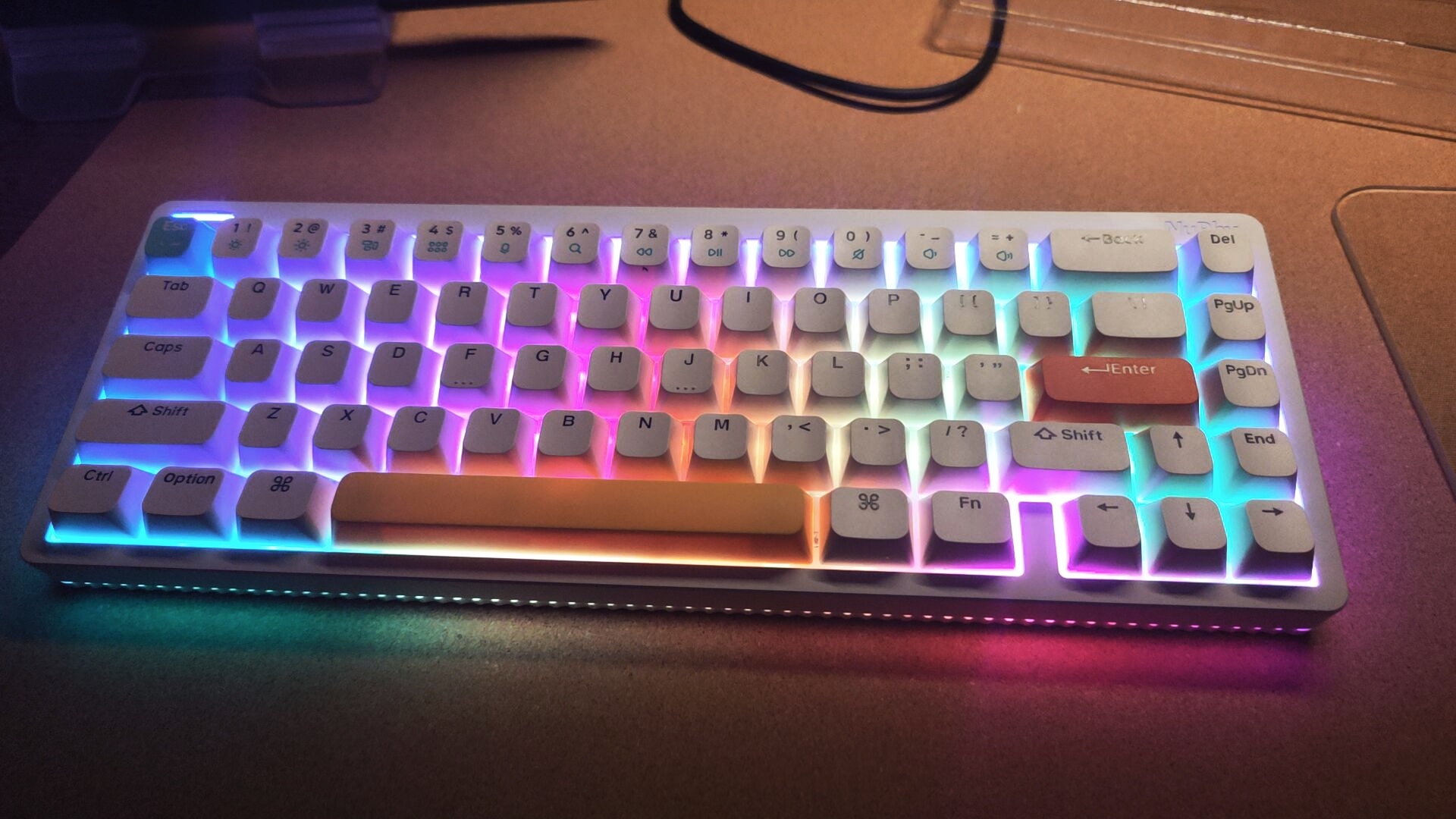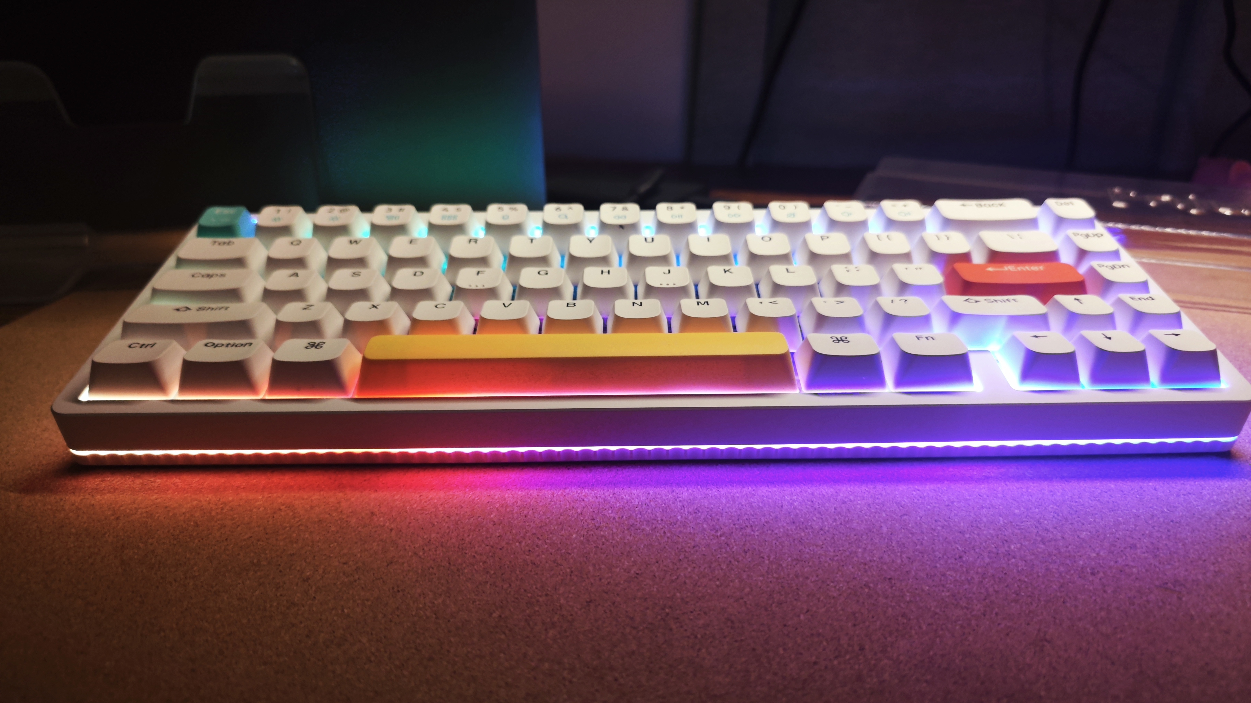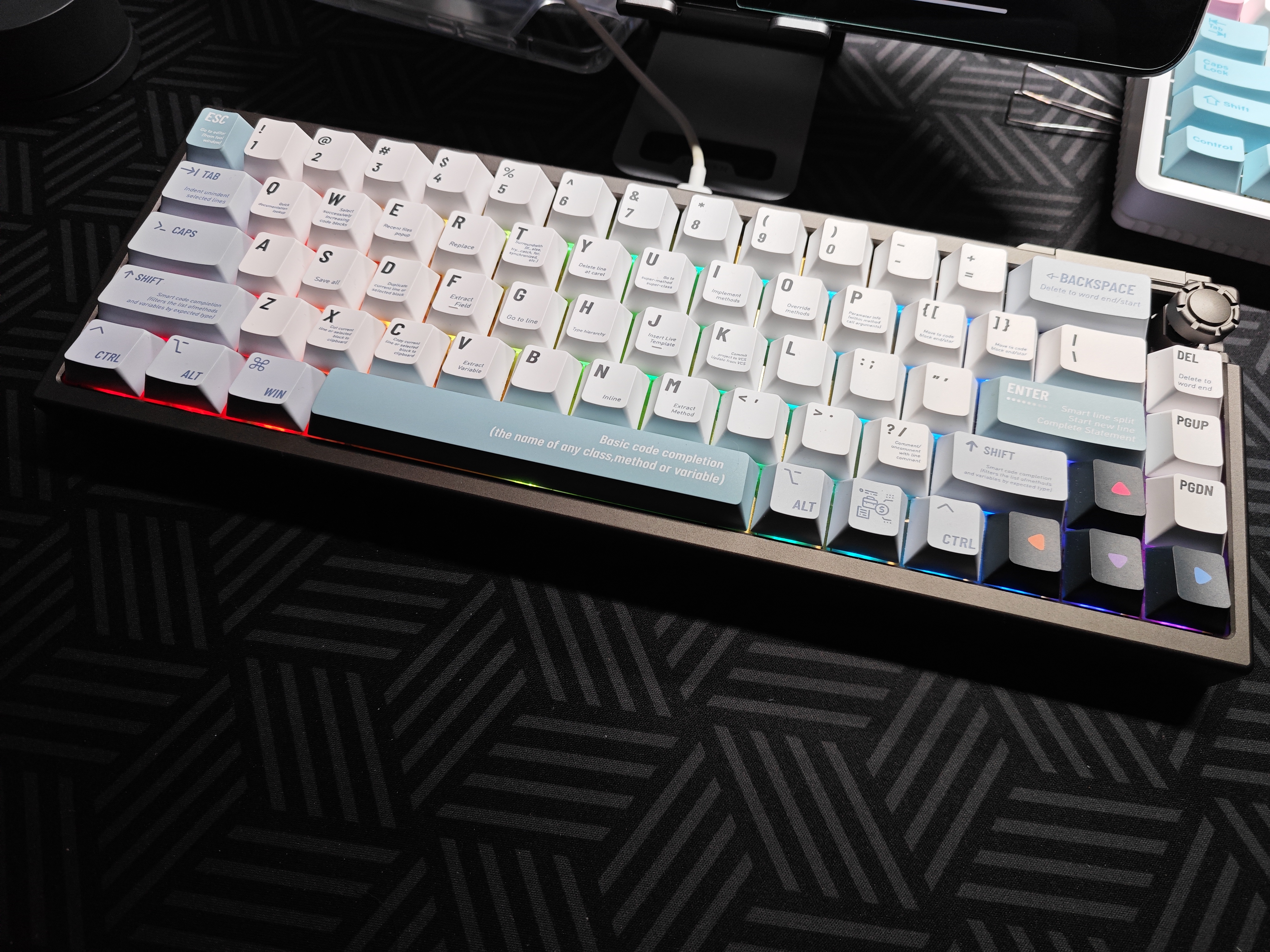 这是B站之前抄得很火的 Nuphy air 65 一个牌子的,整体感觉还是可以,但是键盘灯屏闪比较严重,不过我觉得挺好看的,也冲了