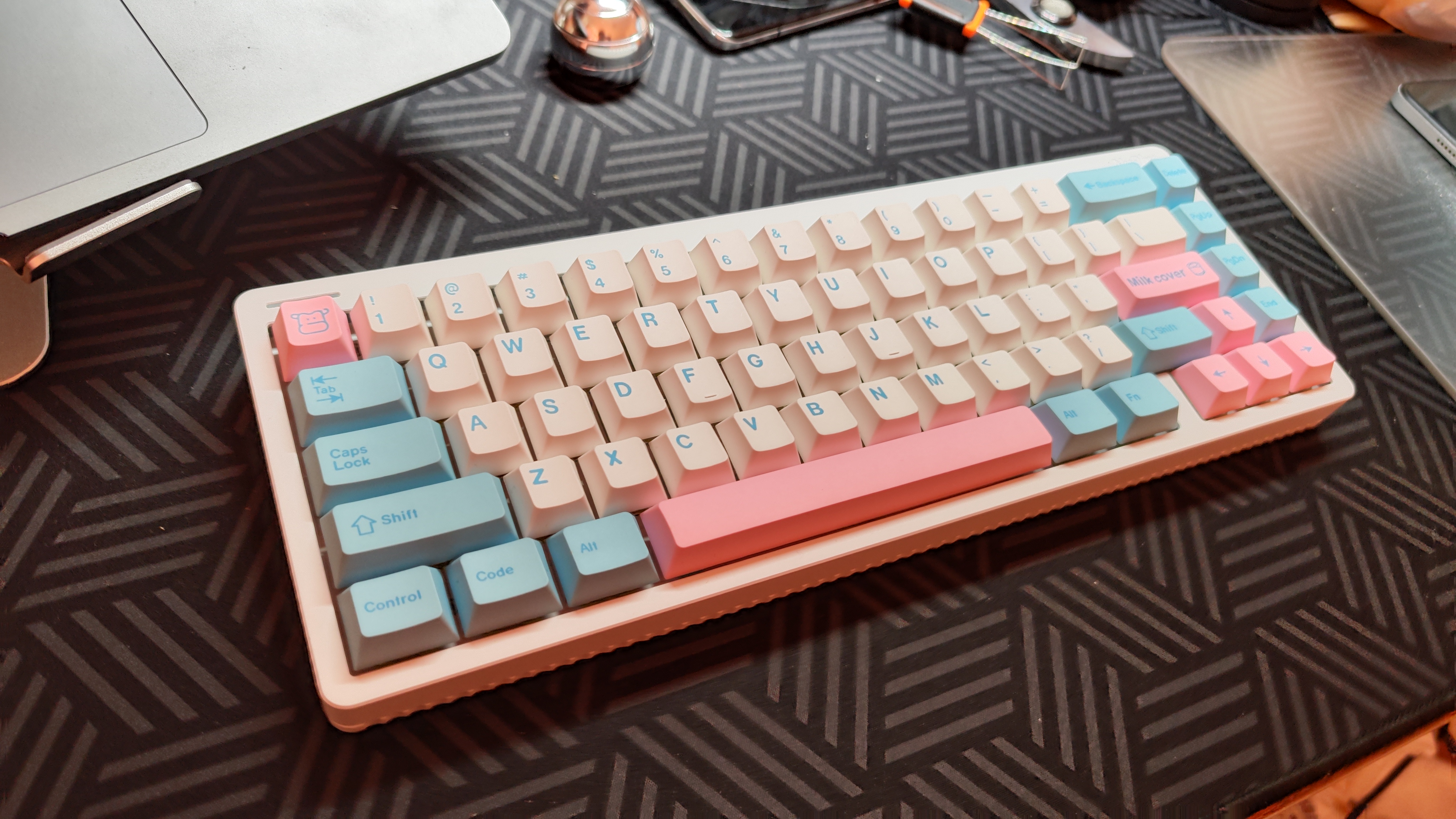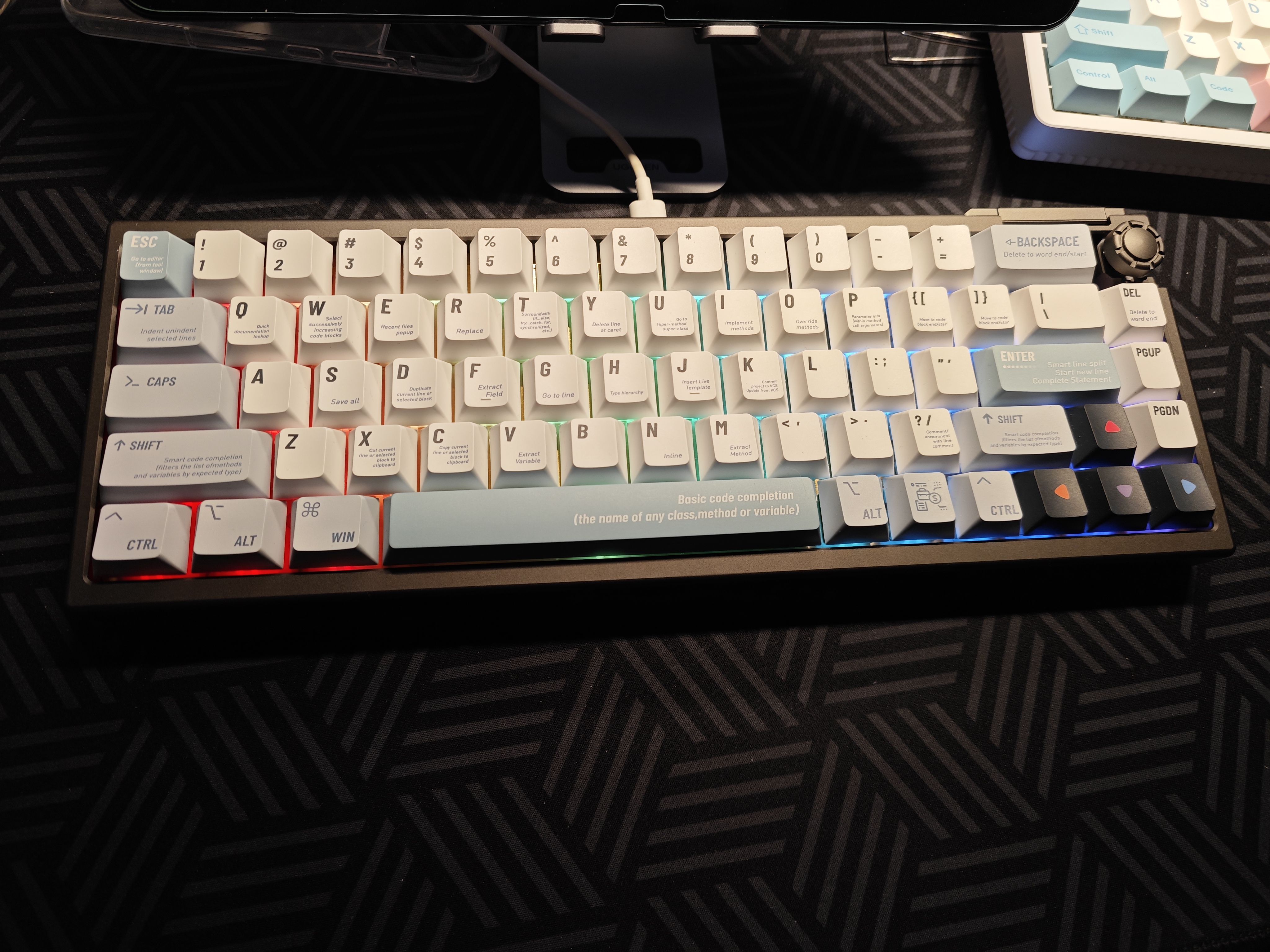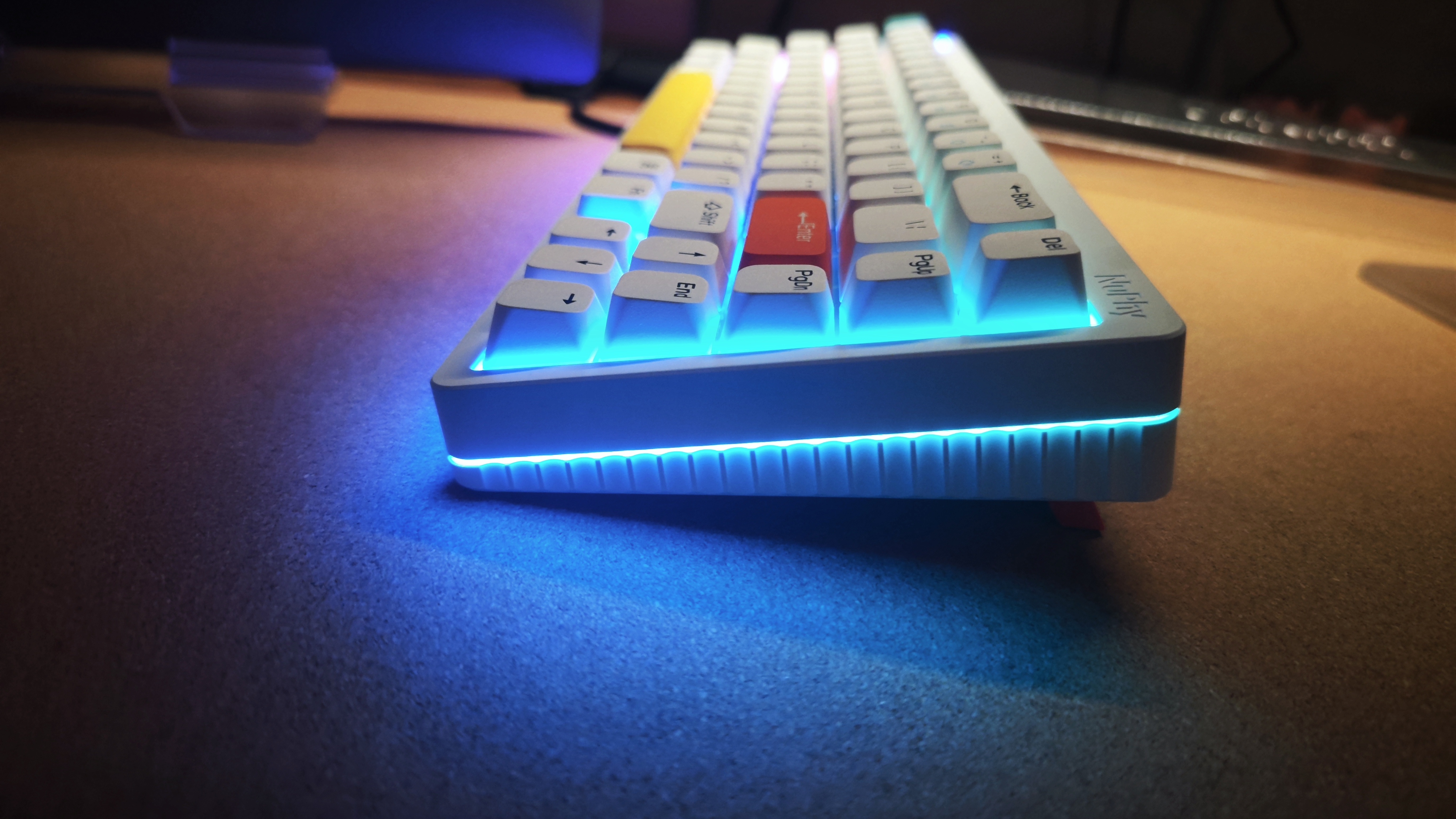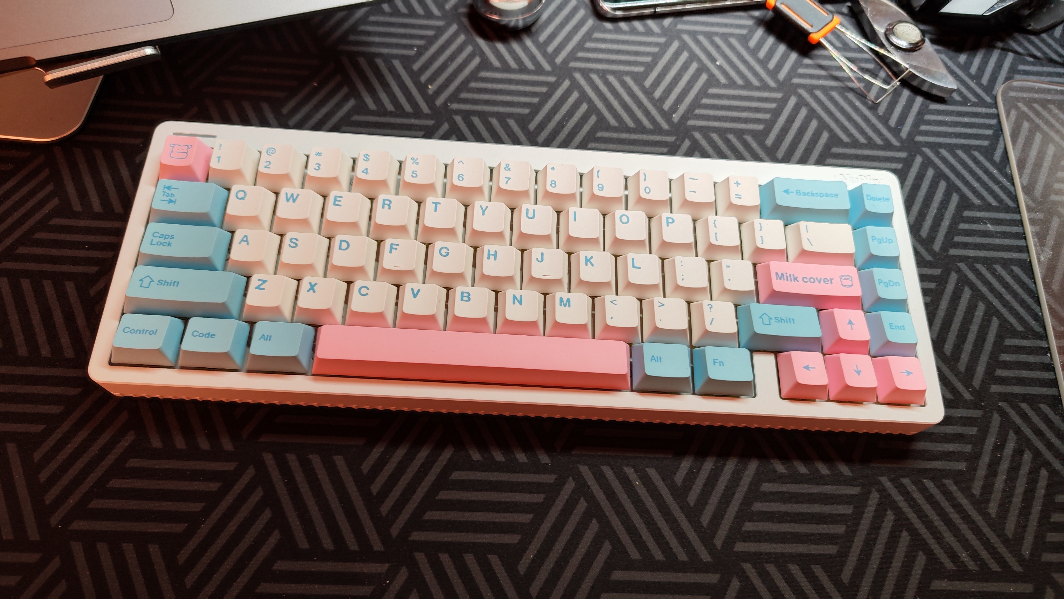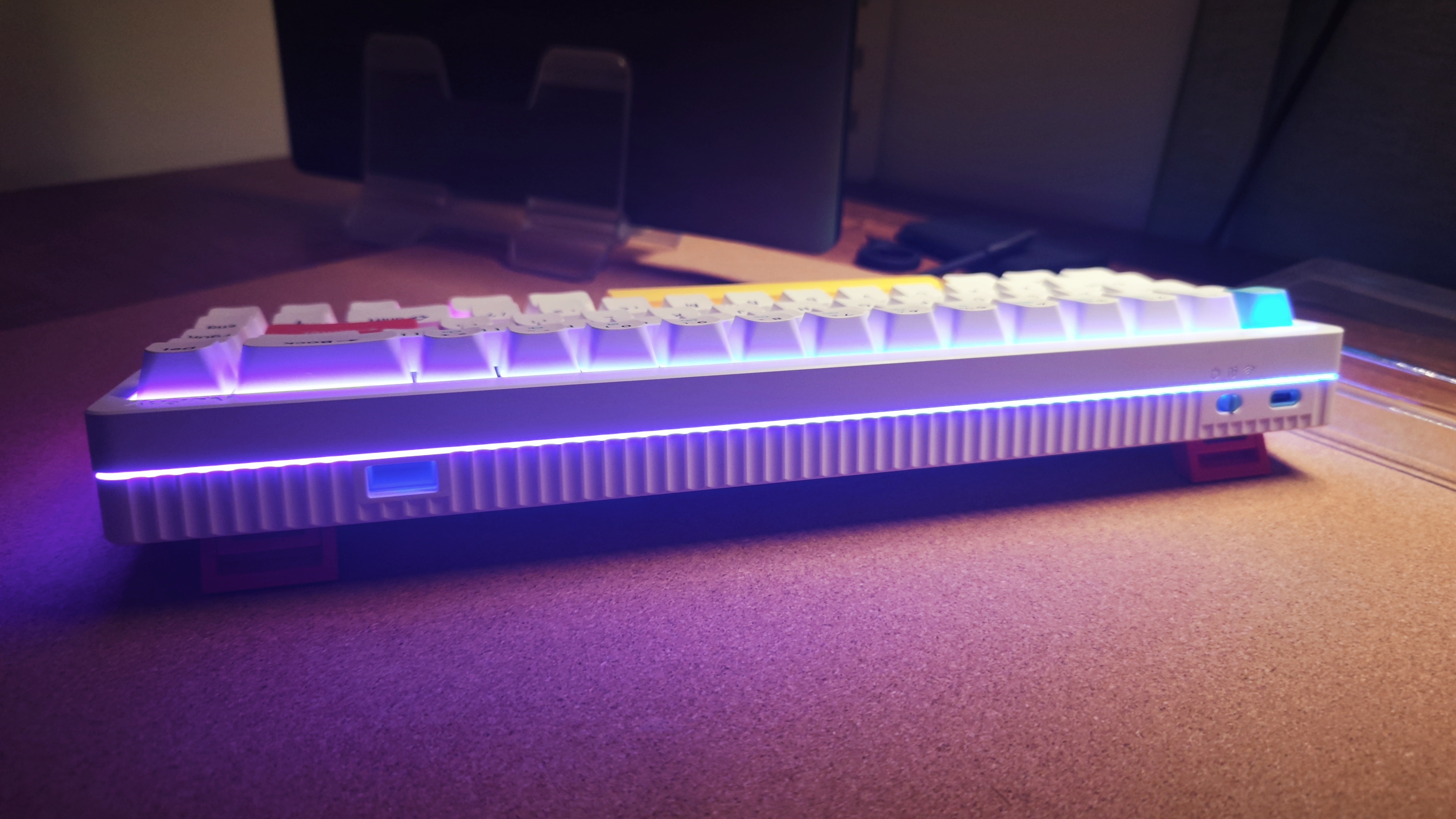 这是B站之前抄得很火的 Nuphy air 65 一个牌子的,整体感觉还是可以,但是键盘灯屏闪比较严重,不过我觉得挺好看的,也冲了