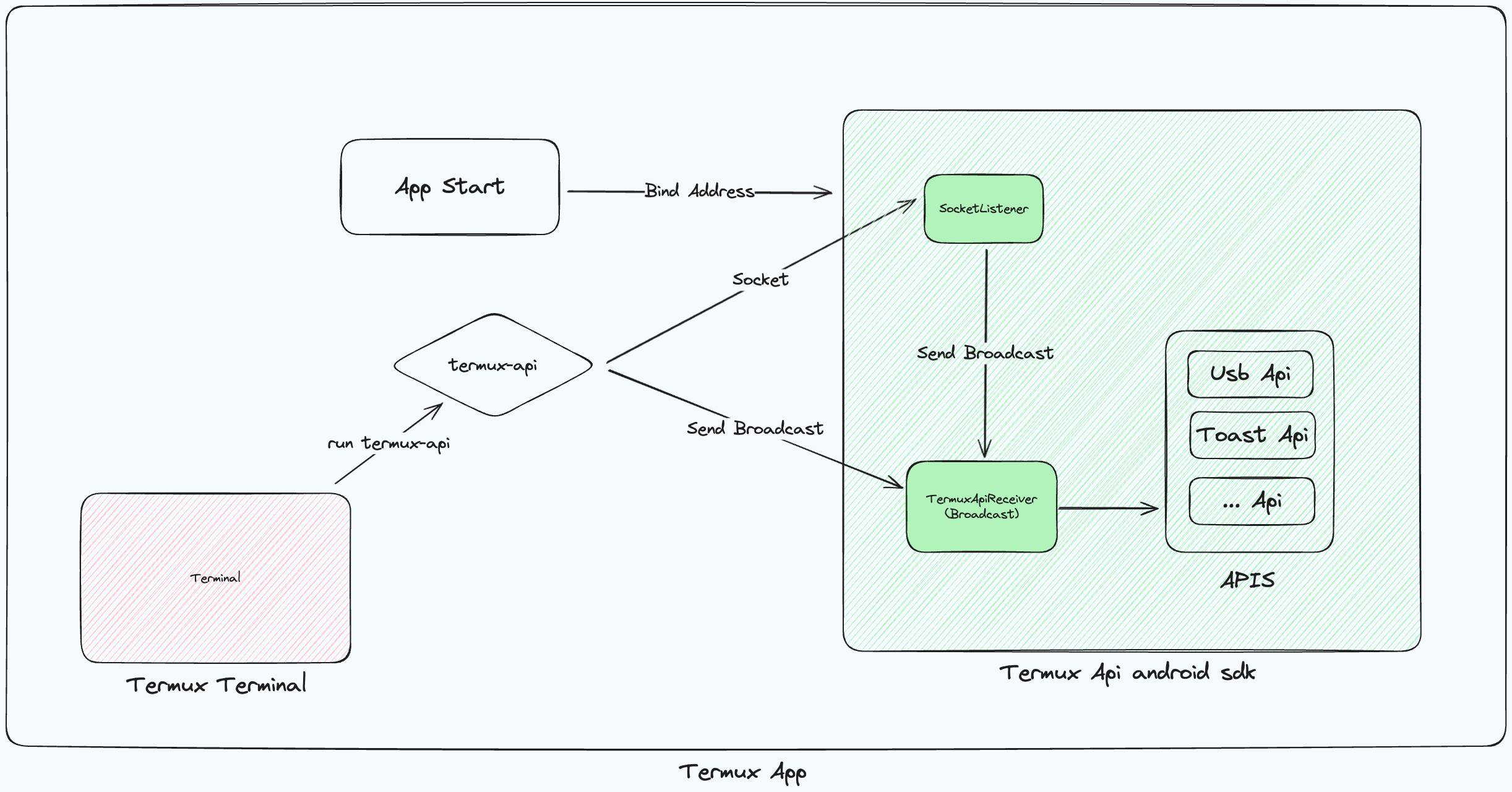 // Try to connect over the listen socket first if running on Android `< 14`. // On Android `>= 14`, if termux-api app process was started previously // and it started the socket server, but later Android froze the // process, the socket will still be connectable, but no response // will be received until the app process is unfrozen agin and // `read()` call below will hang indefinitely until that happens, // so use legacy `am broadcast` command, which will also unfreeze // the app process to deliver the intent. // - https://github.com/termux/termux-api/issues/638#issuecomment-1813233924